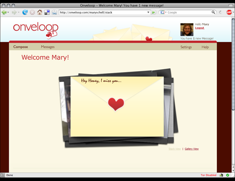 We subsequently explored three concepts for this application: video messaging as a love letter, video messaging as a scrapbook and video messaging as a campfire story (group storytelling). Feedback from users identified the first concept as the strongest, so chose it for further refinement. After documenting the information architecture of the system, developing wireframes, and conducting an additional round of evaluative testing, we produced a working prototype of the application with Adobe's FLEX technology.
